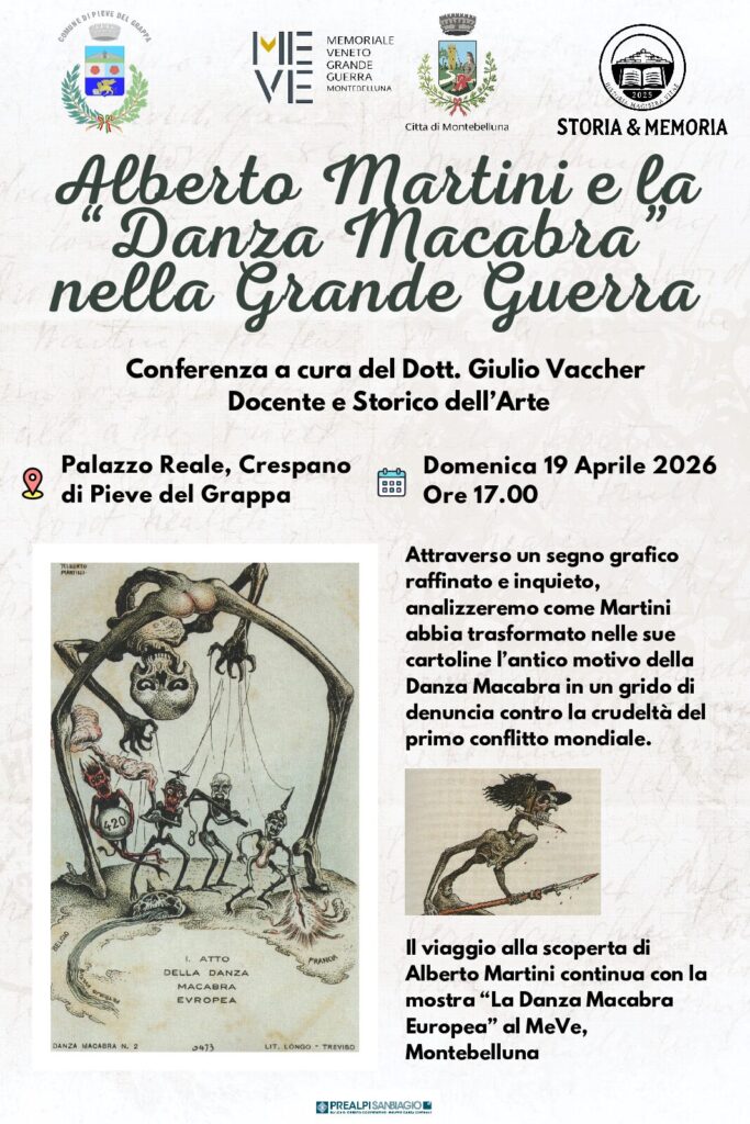 Alberto Martini e la “Danza Macabra” nella Grande Guerra Un viaggio affascinante tra arte, storia e memoria. Domenica 19 aprile 2026 Ore 17.00 Palazzo Reale, Crespano di Pieve del Grappa Il Dott. Giulio Vaccher, docente e storico dell’arte, guiderà una conferenza dedicata all’artista Alberto Martini e alla sua potente interpretazione della Danza Macabra durante la […]