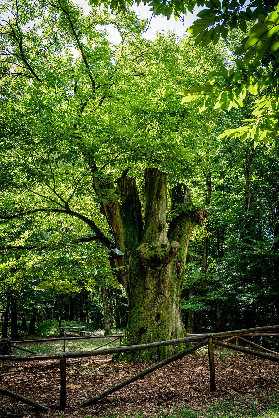 È il più breve e facile tra i Cammini di Mezza Montagna: poco più di mezz’ora se lo si percorre di buon passo, ma non va preso di fretta perché la sua brevità ha un duplice scopo: il primo è il piacere della lentezza.Infatti, dopo i pochi passi di salita dalla località di Ca’ Botto al punto d’accesso, il sentiero si mantiene per buona parte alla medesima quota altimetrica e invita a un passo meditativo e sensoriale tra carpini neri, ornielli, roverelle e castagni, alla ricerca dell’assoluto silenzio, lontano dall’inquinamento acustico della pianura. Giunti poi sul colmo della località Martel, prevede un primo punto di osservazione sulla pianura veneta, un vero spettacolo fatto sia di suggestioni sia di attenzione a riconoscere i paesi di confine tra Trevigiano e Bassanese. Nei giorni particolarmente limpidi si può scrutare un orizzonte lontano: ce lo ricorda il romanziere John Dos Passos (proprio in questi posti durante la Grande Guerra) che da queste terre disegnava e descriveva “la pianura veneta chiazzata di porpora e in fondo le gobbe azzurre dei Colli Euganei”. Nell’arrivare alle Casere Corpon un altro punto di osservazione consente di ammirare un paesaggio più locale, un vero presepio: in primo piano il Col Muson tra Fietta e Castelcucco e in lontananza i Colli Asolani e sullo sfondo il Montello.