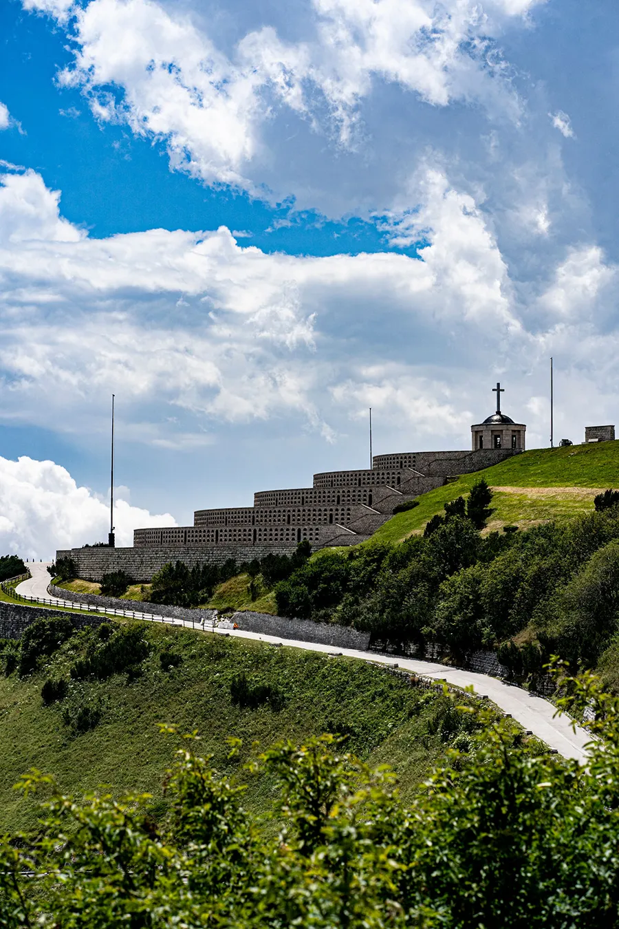 Il Sacrario viene costruito nel 1935, su progetto dell’architetto Giovanni Greppi e dello scultore Giannino Castiglioni. Il corpo centrale del monumento, dove sono custoditi i resti di 12615 Caduti, di cui 10332 ignoti, è costituito da cinque gironi concentrici, ciascuno alto quattro metri e circoscritto da un ripiano circolare largo dieci.